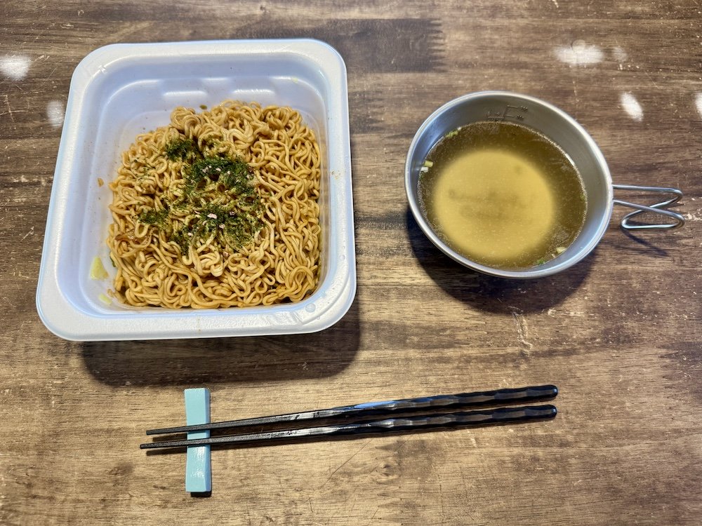 ちょうどお昼だったので、お昼ご飯は簡単に「やきそば弁当」。