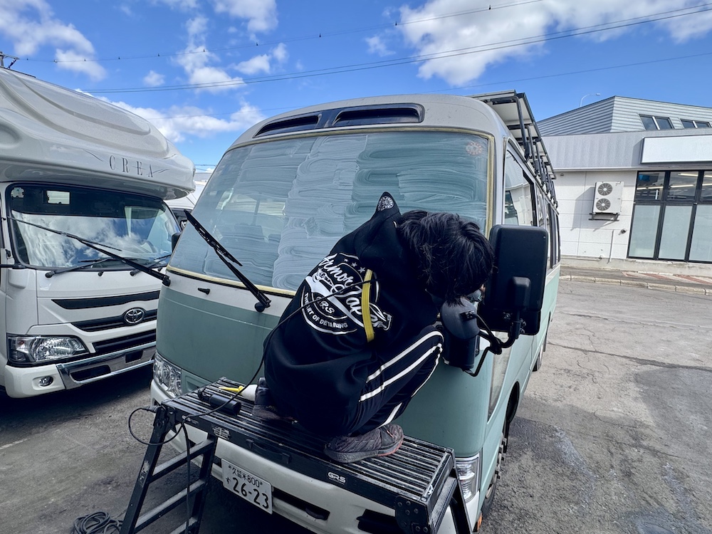 フロントガラスと運転席・助手席の窓ガラスを施工してくださるようです。