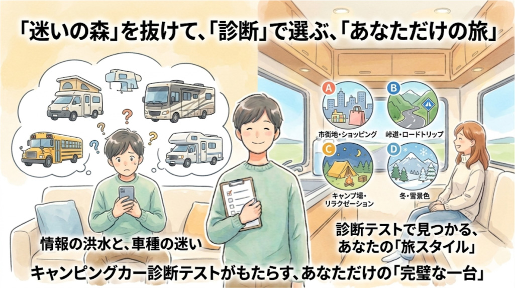 キャンピングカー選びを1分で解決|1,000日以上旅した専門家が教える「旅スタイル診断」活用術 | 旅スタイル別 キャンピングカー購入ガイド