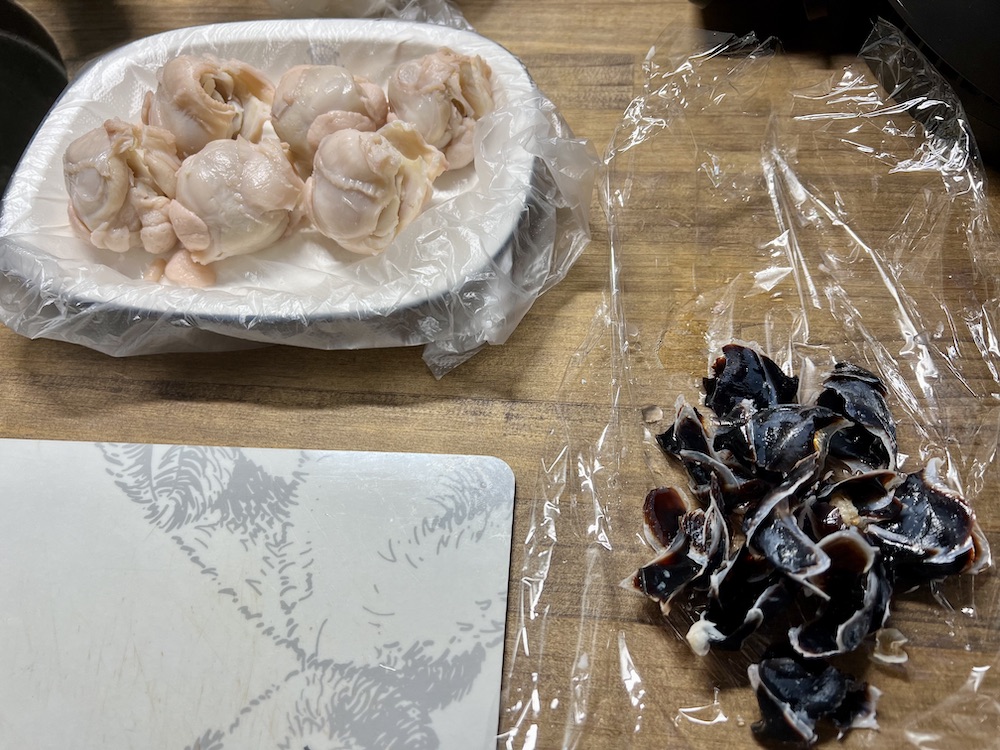 15時を過ぎたので、おつまみ用の「タコの口(通称たことんび)」の下処理。