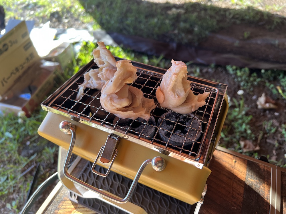 今日はこれをミニコンロで焼いて、ナイフで食べやすい大きさにカットしてマヨネーズを付けて食べてみることに。※既に茹でたものを冷凍して販売されていたものなので、解凍すれば食べれます